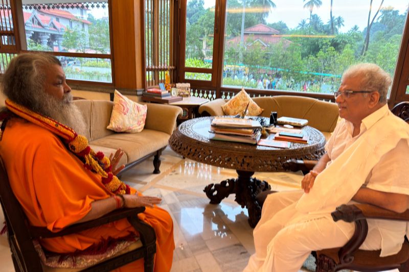During his stay in South India, Vishwaguru Mahamandaleshwar Paramhans Sri Swami Maheshwarananda Ji visited his dear friend Dr Veerendra Ji, the Heggade of Sri Dharmasthala Manjunatha Temple in Udupi, Karnataka.
